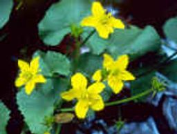 The Marsh Marigold, Caltha palustris, is a member of the buttercup family. It grows in wetlands and blooms in late April.