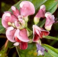 The Groundnut, Apios americana, is a member of the pea family and has a cluster of brown, pea-like flowers. It grows in meadows and blooms in August.