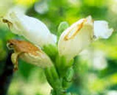 The Turtlehead, Chelone glabra, is a member of the snapdragon family and is named for its flower's resemblance. It grows on the edges of wetlands and blooms in July.
