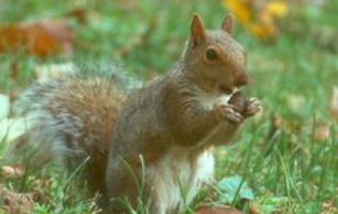The Gray Squirrel is common at Old Pine Farm and feeds on the seeds of Oaks Mockernut, and other species.