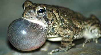 The Fowler's Toad is greenish-gray and has warts on its back. It breeds in puddles and is common in the area.